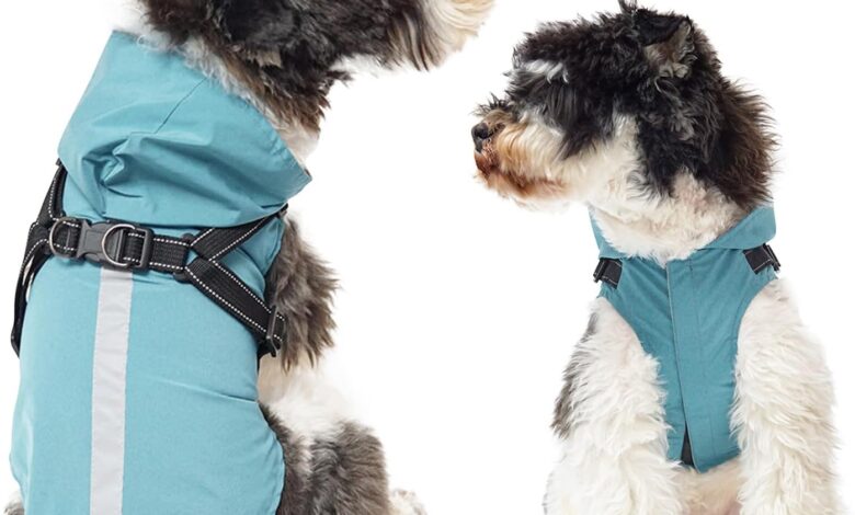 PETCUTE Dog Raincoat, Rain Jacket with Harness, Windproof, Waterproof Dog Coat with Reflective Stripes, Adjustable Dog Rain Jacket with Hood for Small, Medium and Large Dogs