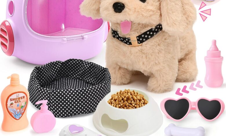 Fun and educational: this pet dog play set provides children with hours of fun and lets them immerse themselves in interactive activities with their pet! Through various activities such as feeding, bathing, grooming, and walking, children learn to take care of their puppy, while developing empathy and responsibility while promoting their imagination and patience.