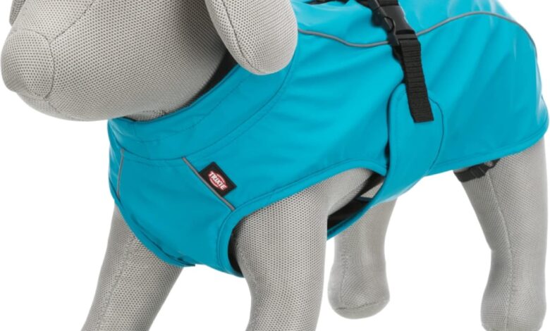 Trixie 2979 Vimy Raincoat for Dogs, M, Turquoise, Dog Rain Jacket with Reflective Elements for More Safety in the Dark, Comfortable and Adjustable