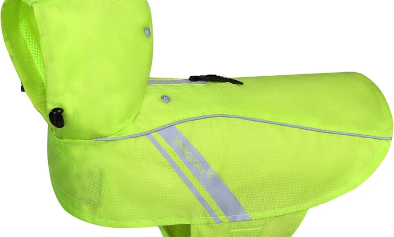 VIVAGLORY Dog Raincoat Sports Style Breathable Comfortable Lightweight Reflective Safety Vest Easy On and Off