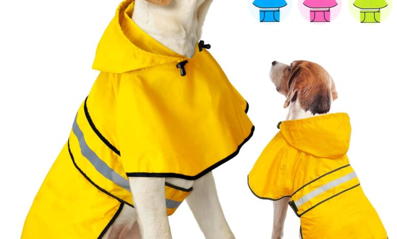 Weesiber Dog Raincoat, Reflective Dog Raincoat with Lead Hole, Waterproof Rain Jacket Dogs Adjustable Dog Poncho with Hood (S, Yellow)