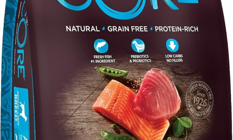 Dog food with high meat content: 34% protein content from fresh and dried salmon and tuna – fresh fish as the main ingredient makes every bite delicious; low carbohydrate and without fillers: for a protein and meat rich diet
