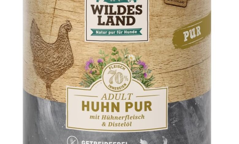 A balanced diet is essential for your dog’s well-being and health. The Wildes Land wet food chicken PUR with thistle oil provides your dog with all important nutrients and is also extremely tasty.